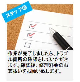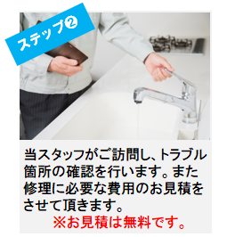近江八幡市の水漏れなら、お申込みから作業完了のお支払いまで簡単4ステップ!まずはフリーダイヤルまでお気軽にお電話ください。経験豊富な近江八幡市の近畿水道サポートセンター担当スタッフがご自宅までお伺いいたします。